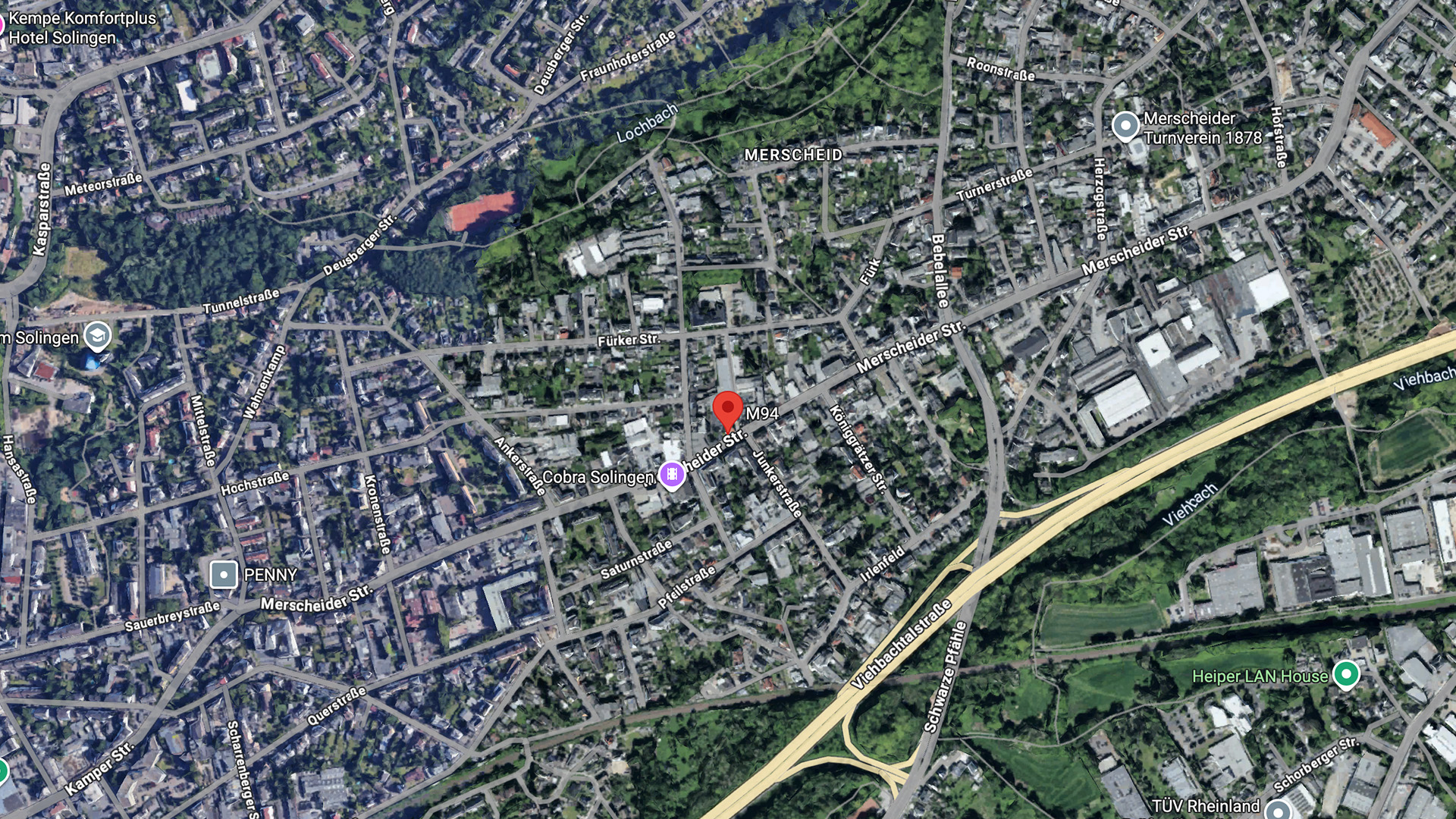 Sie erreichen die auf der gegenüberliegenden Straßenseite ansässige M94 GmbH auf der Merscheider Straße 94 kurze Zeit später.